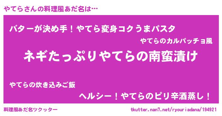 | ヘコむあだ名 | 『やてもー』『やてら(震え声)』 |