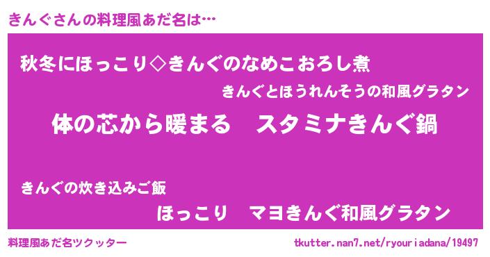 | 女子向けラノベタイトル風あだ名 | 『きんぐの雑貨屋さん』 |