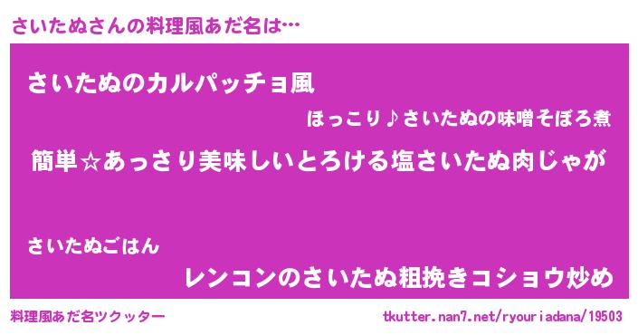 | 意味不明あだ名 | 『永久保存さいたぬ』『自称さいたぬ』 |