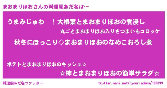 | 男性向けラノベタイトル風あだ名 | 『まおまりほおに滅ぼされるだけの簡単なお仕事です』 |