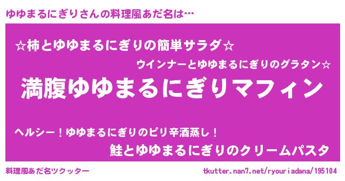 | 女子向けラノベタイトル風あだ名 | 『異世界で失敗しない100のゆゆまるにぎり』 |