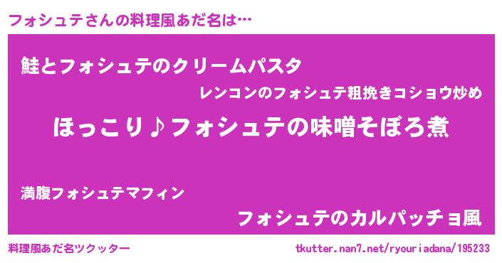 | 意味不明あだ名 | 『ペロリンフォシュテ』『自称フォシュテ』 |