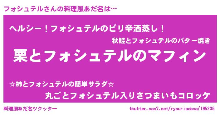 | ヘコむあだ名 | 『フォシュテル(笑)』『酢こんぶ』 |