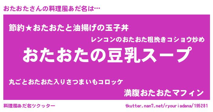 | 胡散臭い通販商品みたいなあだ名 | 『信頼と実績のサプリメント…その名も「おたおた」』 |