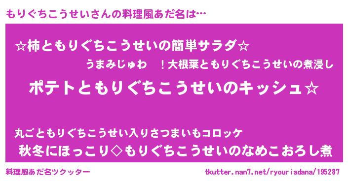 | ヘコむあだ名 | 『もり太郎』『つくし』『もりにゅー』 |