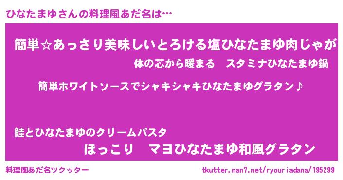 | 意味不明あだ名 | 『とにかく怪しいひなたまゆ』 |
