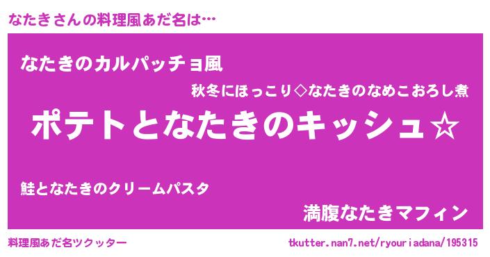 | ヘコむあだ名 | 『なたぷりん』『なたき(遠い目)』 |