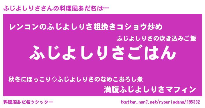 | ヘコむあだ名 | 『ふじよしりさ(笑)』『ふじを』 |