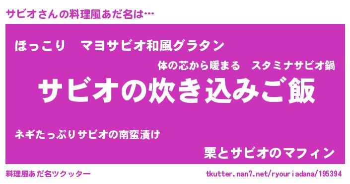 | 男性向けラノベタイトル風あだ名 | 『うちのサビオが世界を掌握している!』 |