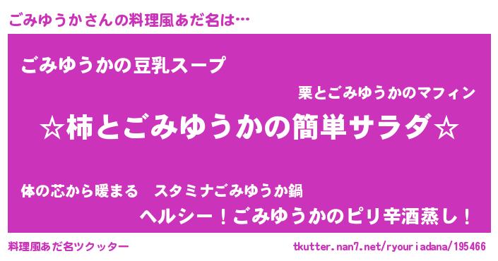 | 胡散臭い通販商品みたいなあだ名 | 『信頼と実績のサプリメント…その名も「ごみゆうか」』 |