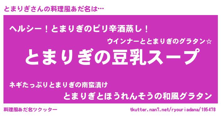 | 萌えアニメ | 主人公(とまりぎ)のあだ名『 とまとま』 |