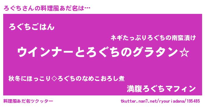 | ヘコむあだ名 | 『豆乳』『ろぐち(笑)』『ろぐにゅー』 |
