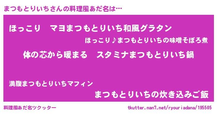 | 意味不明あだ名 | 『まつもとりいちフォーエバー』 |