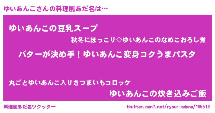 | 男性向けラノベタイトル風あだ名 | 『おまえをオタクにしてやるから、俺をゆいあんこにしてくれ! 』 |