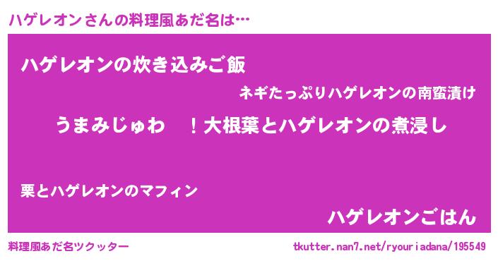| 意味不明あだ名 | 『ハゲレオンフォーエバー』 |