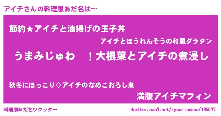 | ヘコむあだ名 | 『酢こんぶ』『アイふぇ~』『アイを』 |