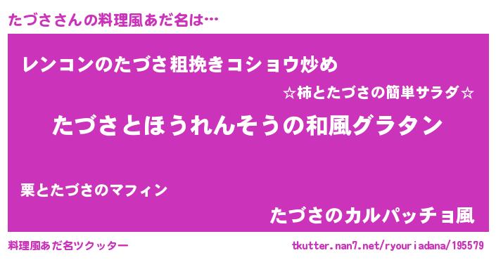 | ヘコむあだ名 | 『なまこ酢』『たづっふぃ~』 |