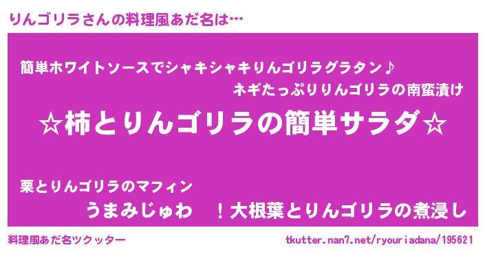 | 胡散臭い通販商品みたいなあだ名 | 『信頼と実績のサプリメント…その名も「りんゴリラ」』 |