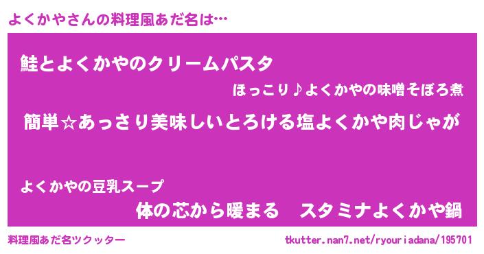 | ヘコむあだ名 | 『よくかや(笑)』『牛乳』『よくにー』 |