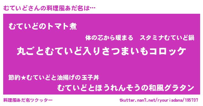 | ヘコむあだ名 | 『なまこ酢』『むてもー』『むて太郎』 |