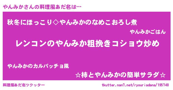 | 意味不明あだ名 | 『自称やんみか』『つくし科やんみか属』 |