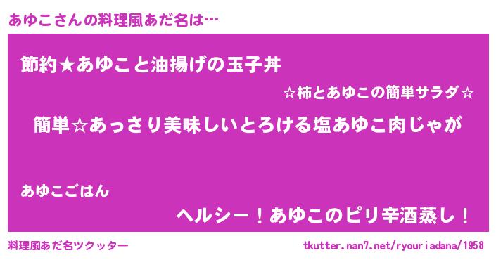 | 意味不明あだ名 | 『永久保存あゆこ』『ペロリンあゆこ』 |
