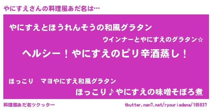 | 意味不明あだ名 | 『自称やにすえ』『つくし科やにすえ属』 |
