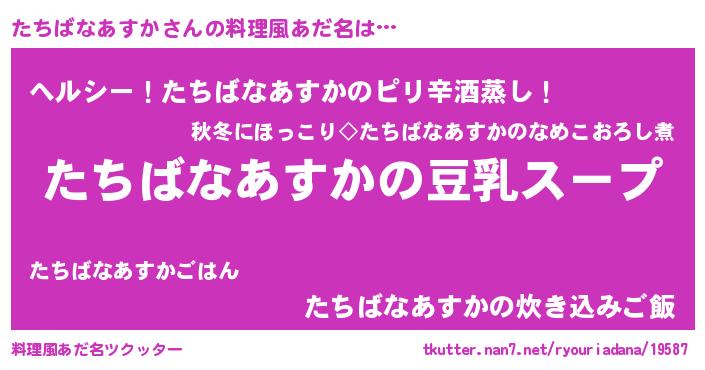 | 女子向けラノベタイトル風あだ名 | 『たちばなあすかは平凡を望む』 |