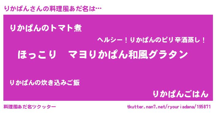 | ヘコむあだ名 | 『りかにゅー』『りかぱん(笑)』 |