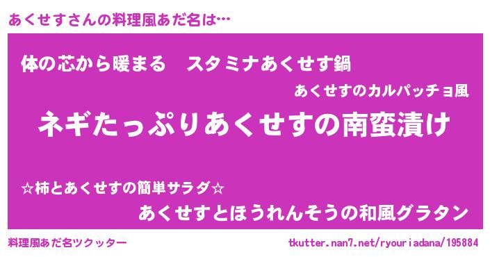 | ヘコむあだ名 | 『あくっふぃ~』『牛乳』『あくお』 |