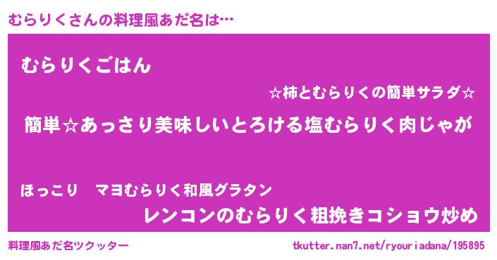 | 意味不明あだ名 | 『永久保存むらりく』『自称むらりく』 |