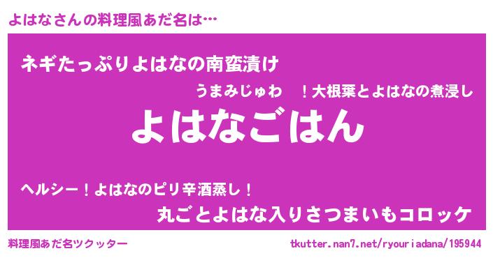 | ヘコむあだ名 | 『よはもー』『酢こんぶ』 |
