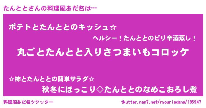 | ヒーロー風カッコイイあだ名 | 『仮面タンダー』『幻影騎士タン』 |