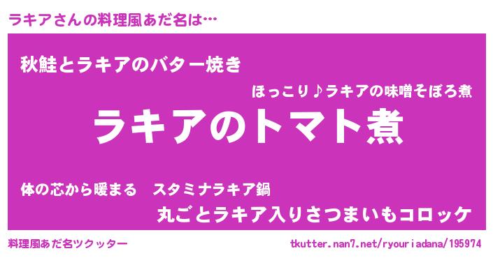 | ヒーロー風カッコイイあだ名 | 『正義の使者ラキア』『ネオラキア』 |
