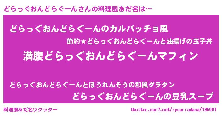 | 意味不明あだ名 | 『永久保存どらっぐおんどらぐーん』 |
