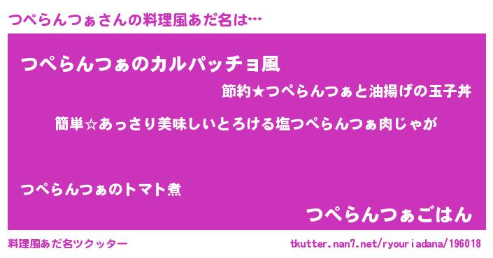 | 意味不明あだ名 | 『永久保存つぺらんつぁ』 |