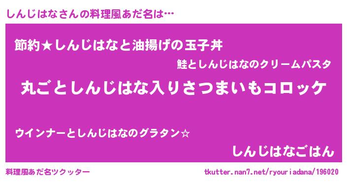 | 意味不明あだ名 | 『住所不定無職しんじはな(4歳)』 |