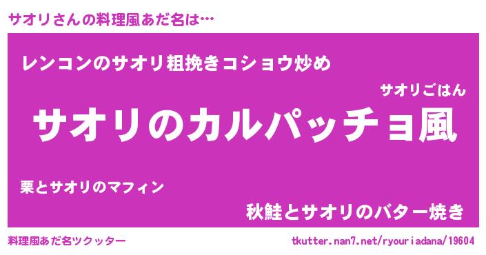 | 女子向けラノベタイトル風あだ名 | 『サオリが死なない童話 林檎のサオリの診療簿』 |