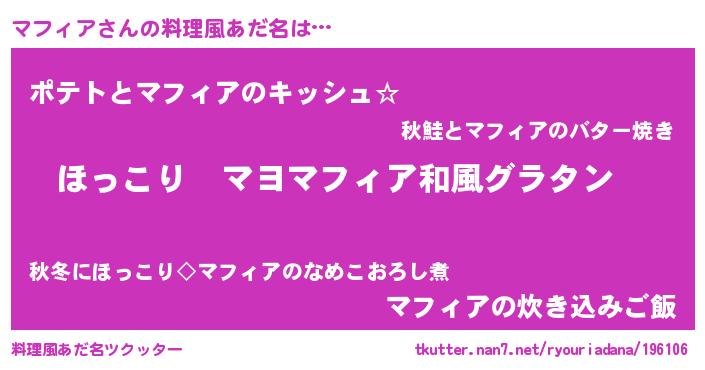 | ヘコむあだ名 | 『マフっぺ』『マフィア(震え声)』 |