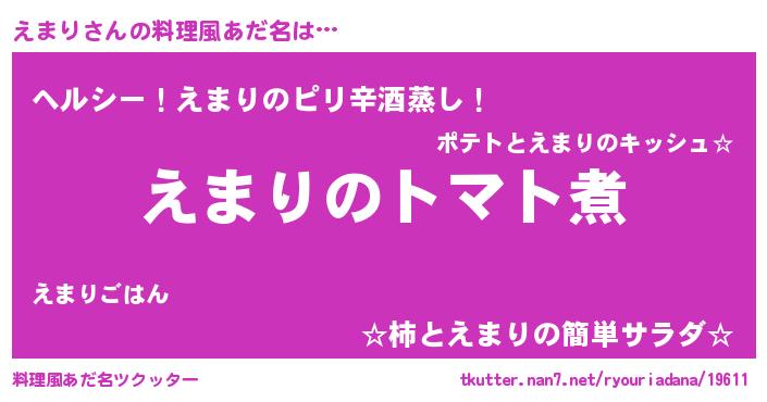 | 女子向けラノベタイトル風あだ名 | 『えまり夫妻のなれそめ』『闇のえまり』 |