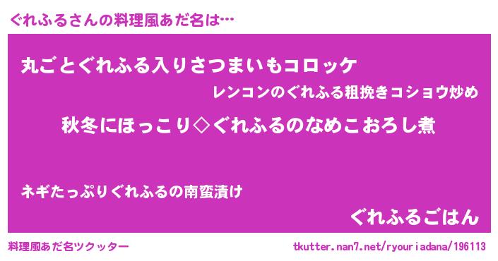 ヘコむあだ名 | 『ぐれにゅー』『なまこ酢』『ぐれお』 |