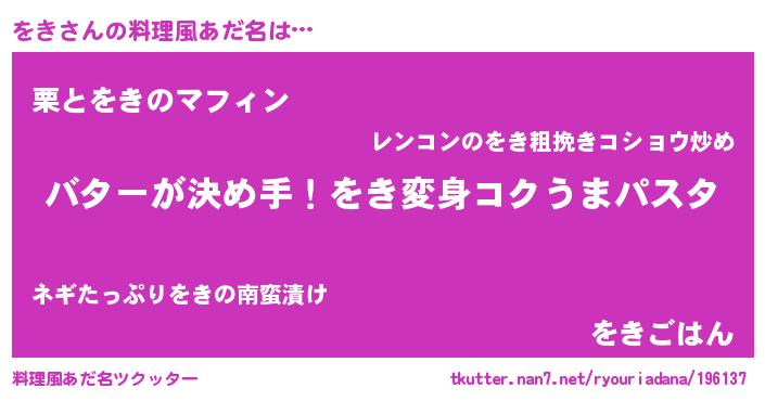 | 自動車の名前っぽいあだ名 | 『ヲンR』『ランヲキギーニ』 |