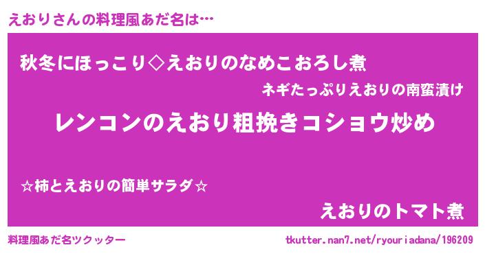 | 意味不明あだ名 | 『自称えおり』『眠気覚ましガムえおり味』 |