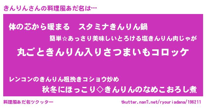 | ヒーロー風カッコイイあだ名 | 『仮面キンダー』『ウルトラきんりんマン』 |