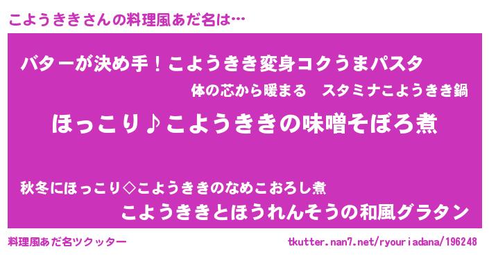 | ヘコむあだ名 | 『こよふぇ~』『なまこ酢』 |