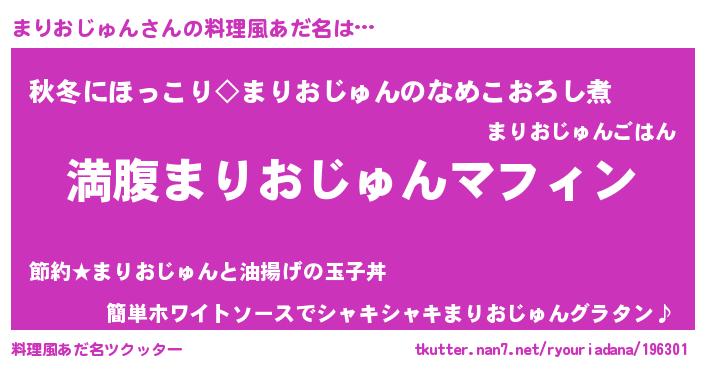 | 女子向けラノベタイトル風あだ名 | 『異世界で失敗しない100のまりおじゅん』 |