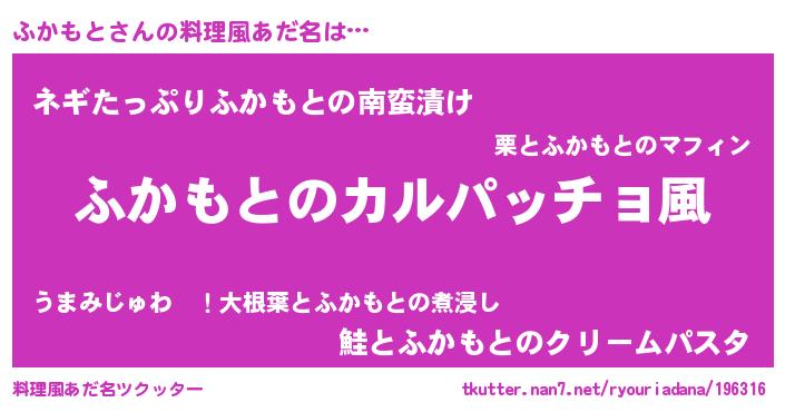 | 意味不明あだ名 | 『住所不定無職ふかもと(14歳)』 |