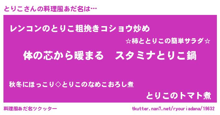 | 恥ずかしいあだ名 | 『とりっちょ』『トリコデラックス』 |