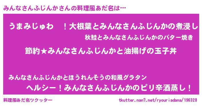 | 男性向けラノベタイトル風あだ名 | 『みんなさんふじんかの憂鬱』 |
