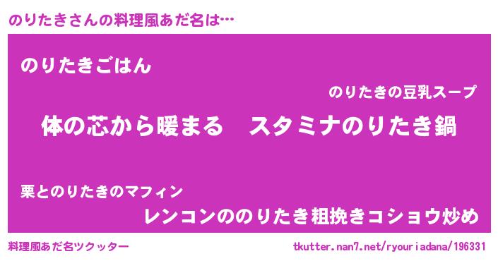 | 意味不明あだ名 | 『のりたきフォーエバー』『自称のりたき』 |